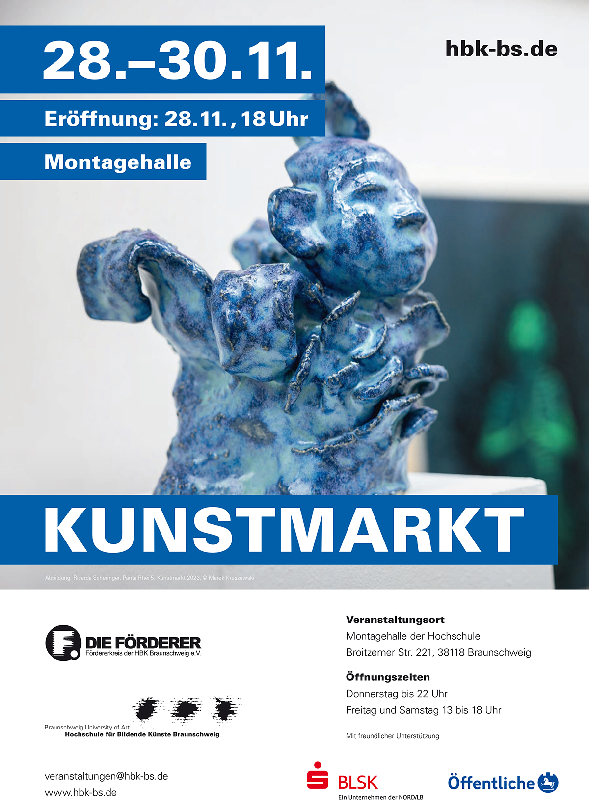 Präsentation von Semesterarbeiten der Studierenden der Freien Kunst – Bildhauerei, die im Rahmen der Ausstellung öffentlich gezeigt und zum Verkauf angeboten wurden.